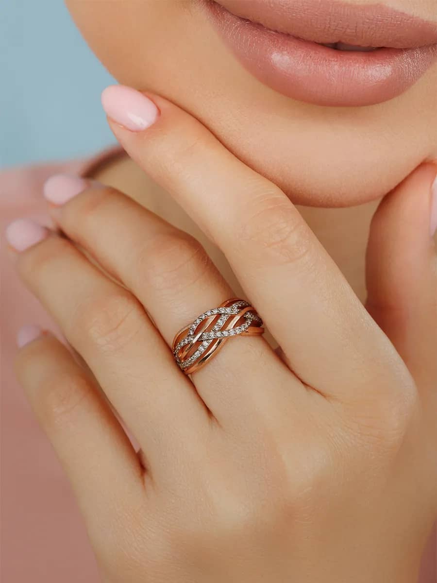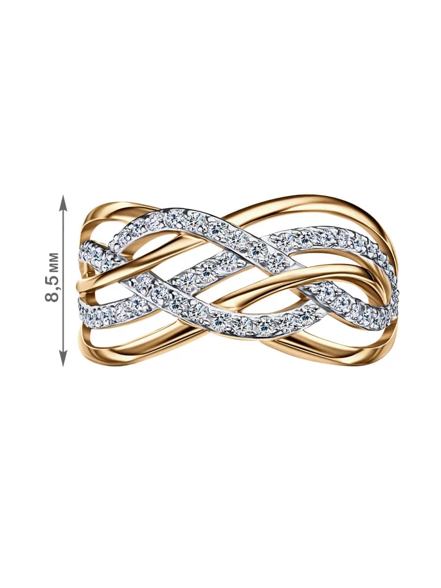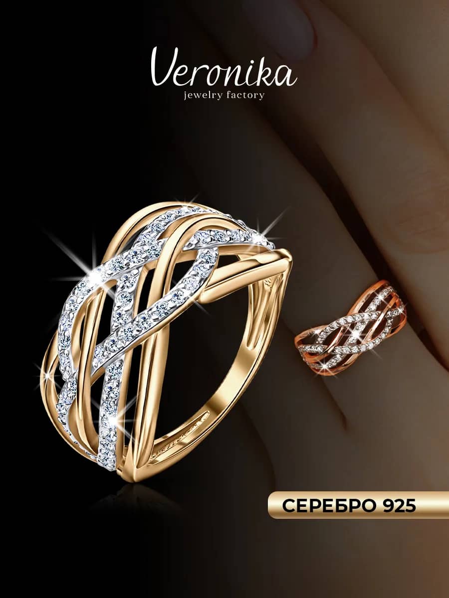 Кольцо от бренда Veronika. Это широкое кольцо - дорожка, украшенное круглыми фианитами с бриллиантовой огранкой, создаёт элегантный и романтичный образ. Покрытие из золота добавляет блеск и изысканность, делая его идеальным аксессуаром для особых моментов